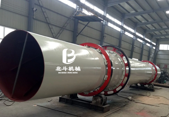竹木烘干機由熱風爐、電機減速機齒輪動力部分、拖輪滾圈承載部分組成。滾筒式的結構烘干機在運行時,物料在筒內緩慢傾斜,配合內部刮板將物料打散攪勻,使物料與熱氣流的接觸表面增大,提高干燥速率并促進物料前進,從而達到充分烘干的作用。